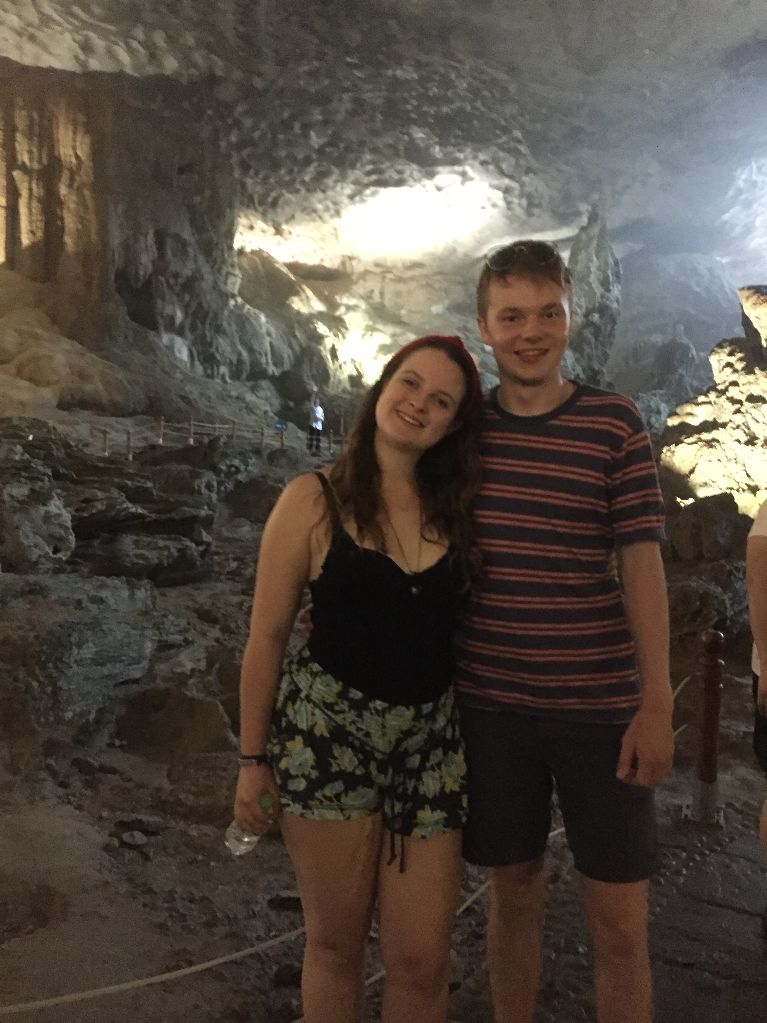 We were picked up bright and early the next morning for our trip to halong bay! Halong bay is a collection of limestone islands situated 4 hours away from Hanoi. After arriving on our boat and enjoying our fabulous 4 course lunch we started our first activity. Kayaking through a cave to the beautiful lagoon inside. Will and I went right to the edge and were able to see two monkeys hiding in the trees. After being initially apprehensive about paddling in the same boat we realised we were a great team and were able to almost paddle in time!